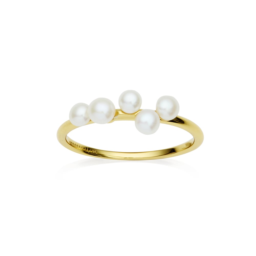 Delicate Freshwater button and Keshi pearls set on yellow gold-plated Sterling Silver. Designed to be stacked and layered.